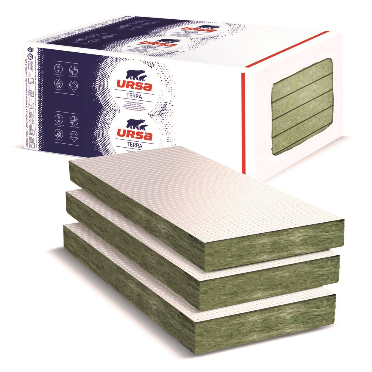 URSA TERRA, la gamme de laine minérale de verre, offre des performances d’isolation thermiques, phoniques et contre le feu de haut niveau.
