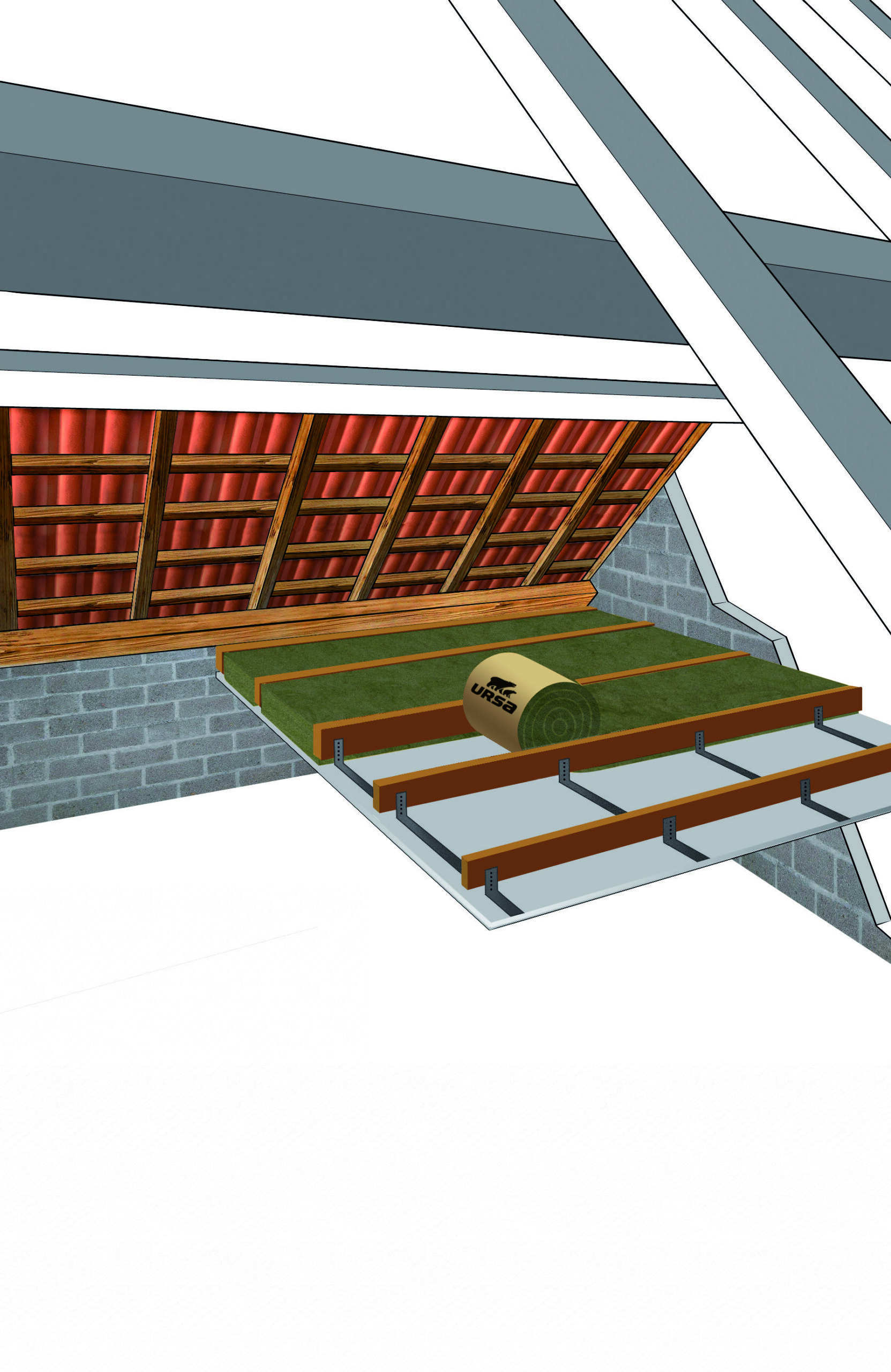 Matelas de laine de verre revêtu sur une face d'un papier kraft quadrillé